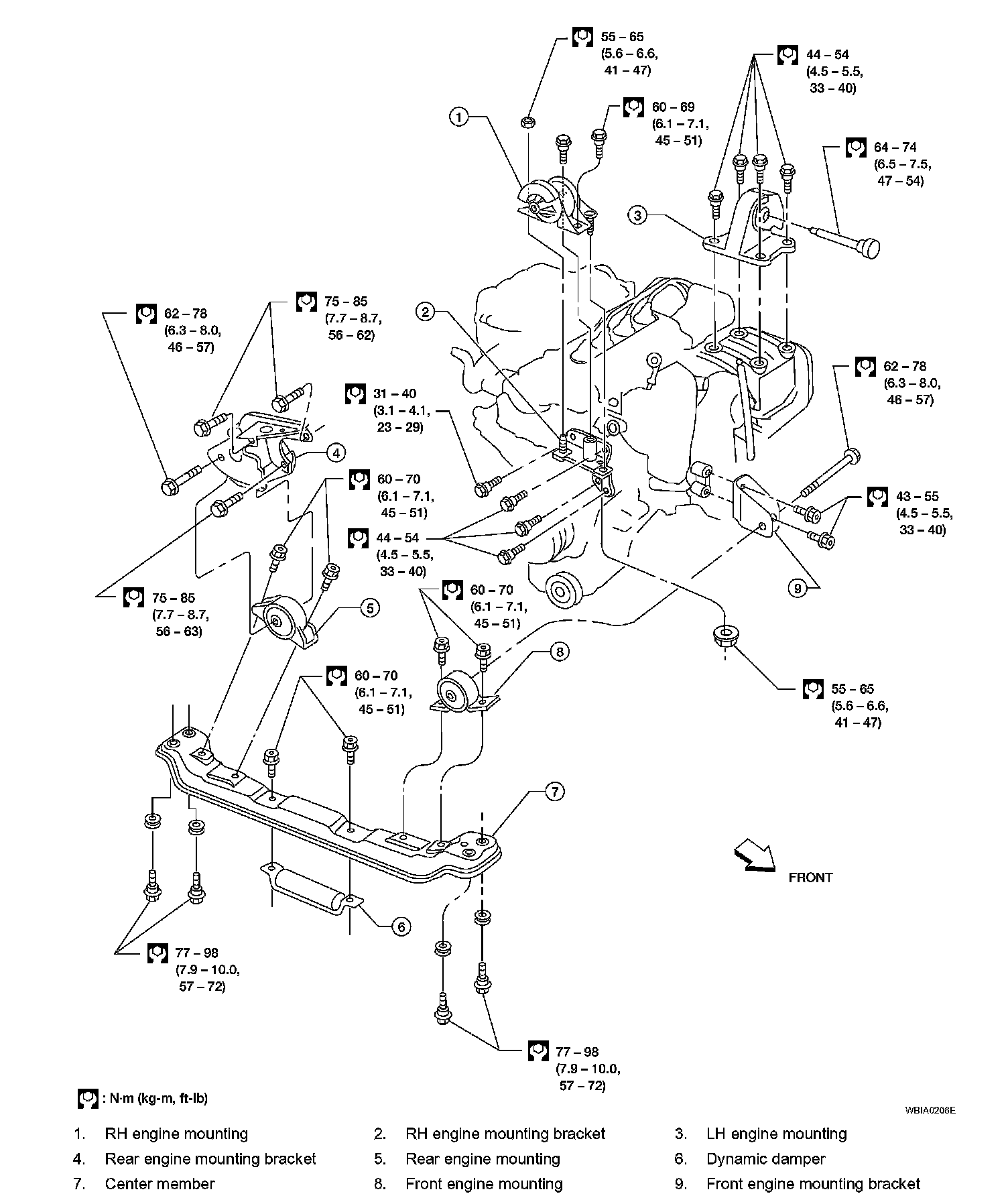 Step 2: 58,8 Nm (6.0 kg-m, 43 ft. lbs.)
