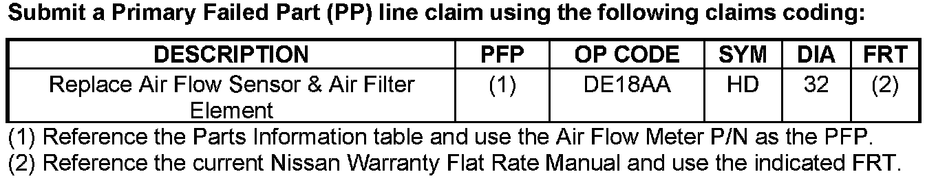 ^ A new Genuine Nissan air filter element must be used for all warranty claims and any other claim for which Nissan pays.
