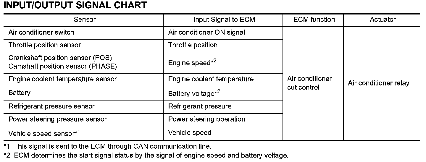 Air Conditioning Cut ControlInput/Output Signal Chart: