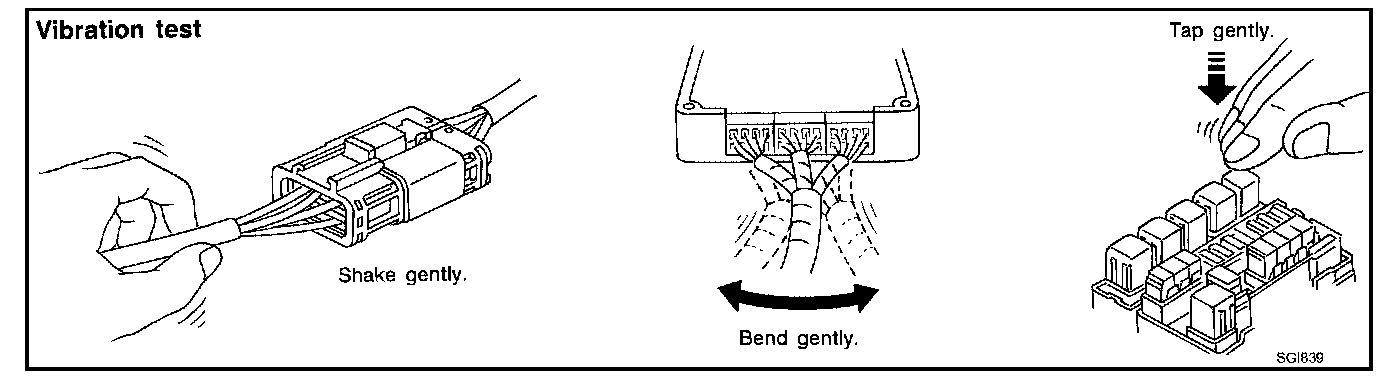 Determine which connectors and wiring harness would affect the electrical system you are inspecting. Gently shake each connector and harness while monitoring the system for the incident you are trying to duplicate. This test may indicate a loose or poor electrical connection.