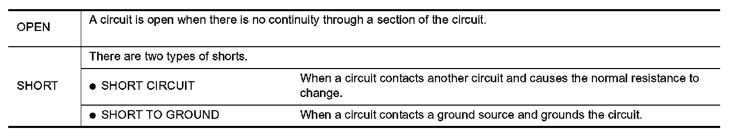 The continuity check is used to find an open in the circuit. The digital multimeter (DMM) set on the resistance function will indicate an open circuit as over limit (no beep tone or no ohms symbol). Make sure to always start with the DMM at the highest resistance level. To help in understanding the diagnosis of open circuits, please refer to the previous schematic.