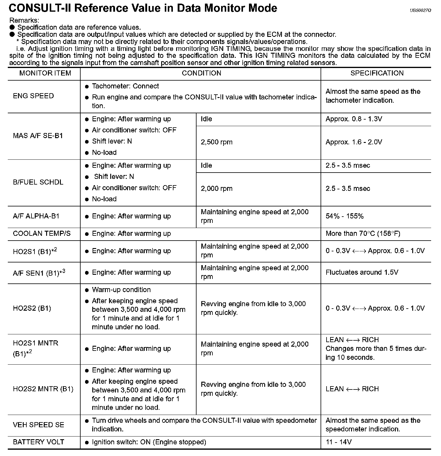 CONSULT-II Reference Value in Data Monitor Part 2:
