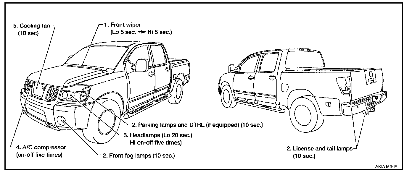- In auto active test mode, operation inspection can be performed when IPDM E/R sends a drive signal to the following systems: