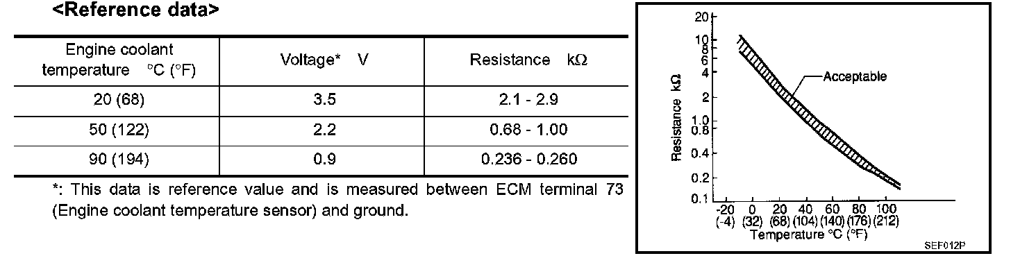 ENGINE COOLANT TEMPERATURE SENSORCheck resistance as shown in the figure.
