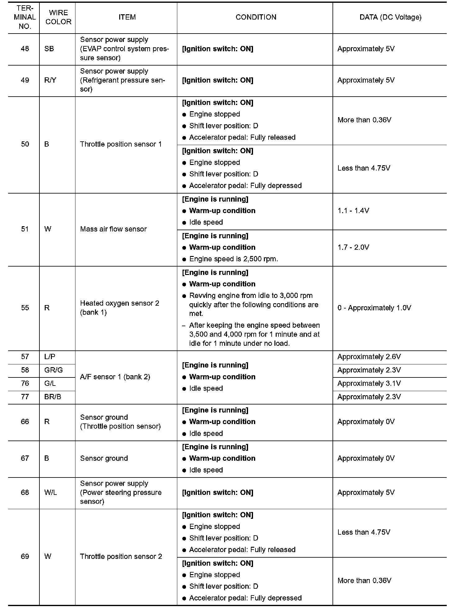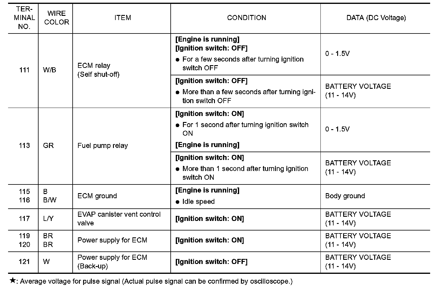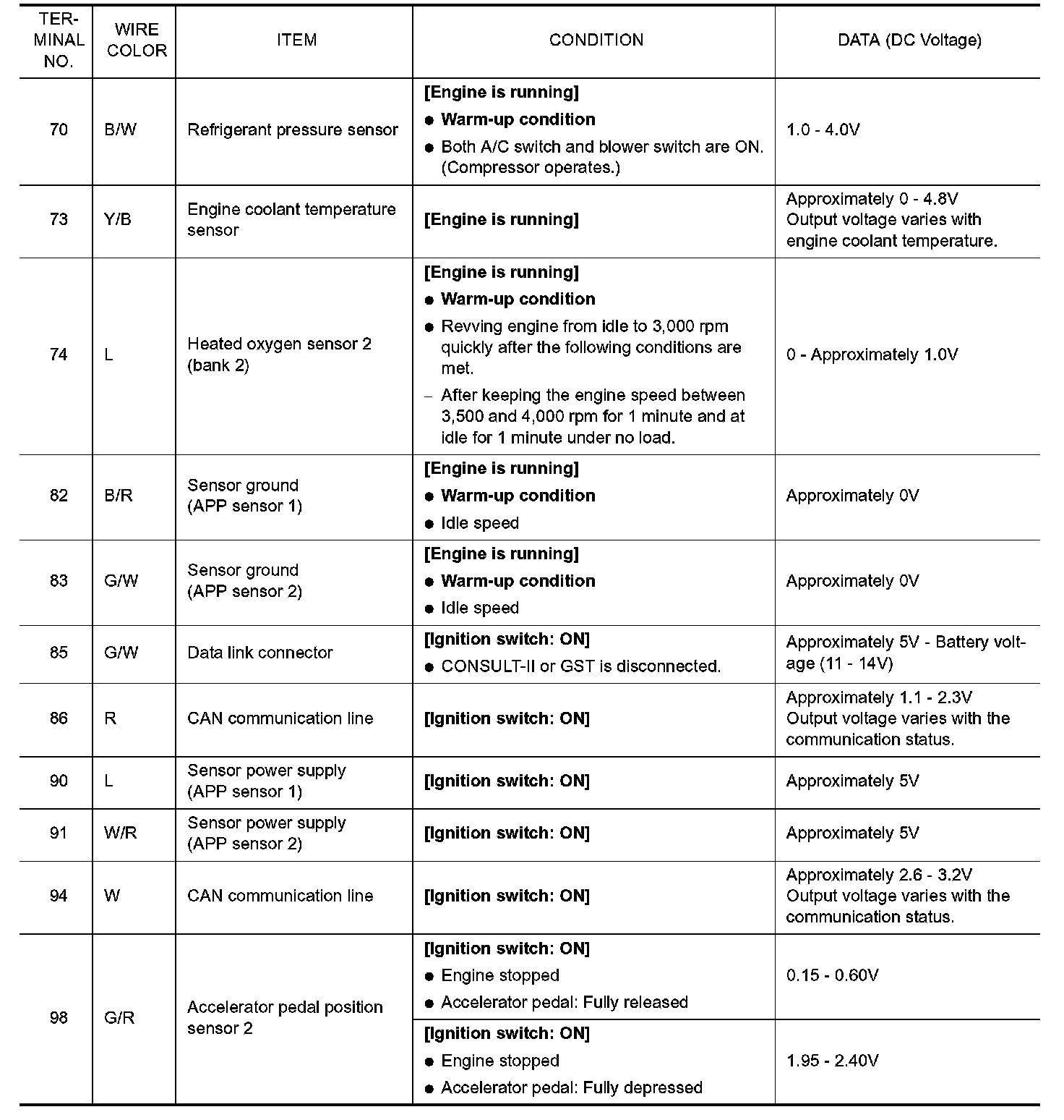ECM Harness Connector Terminal Layout: