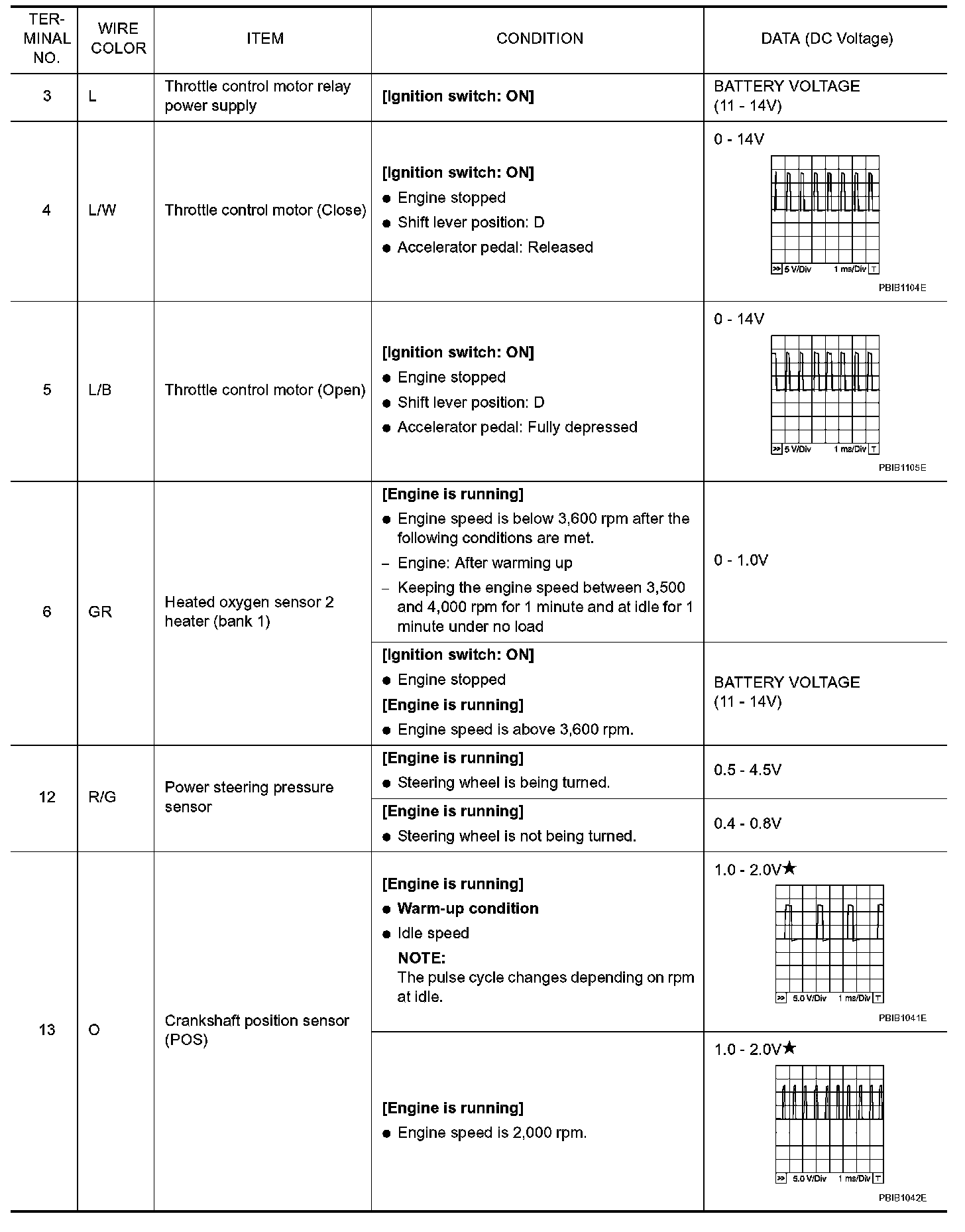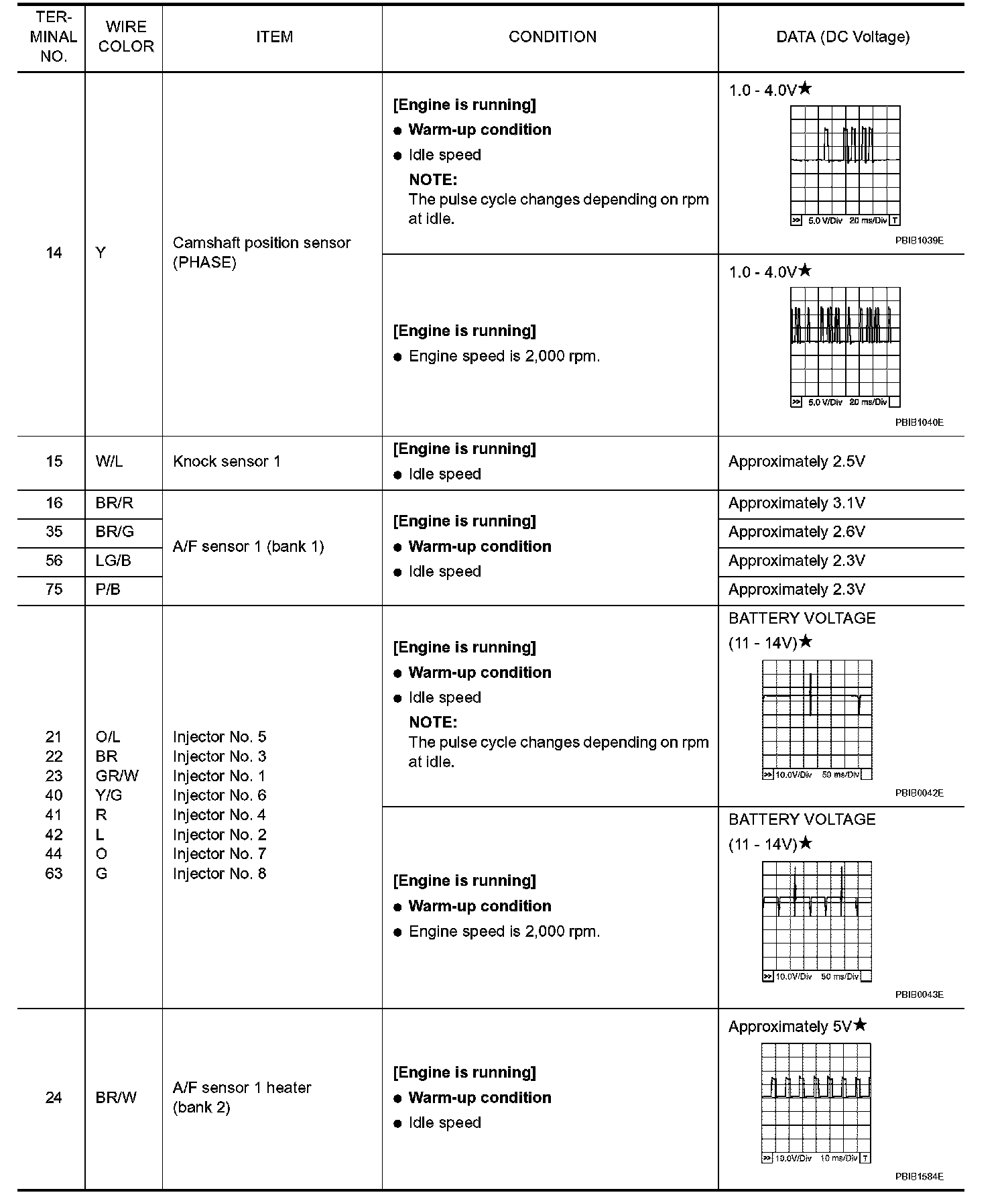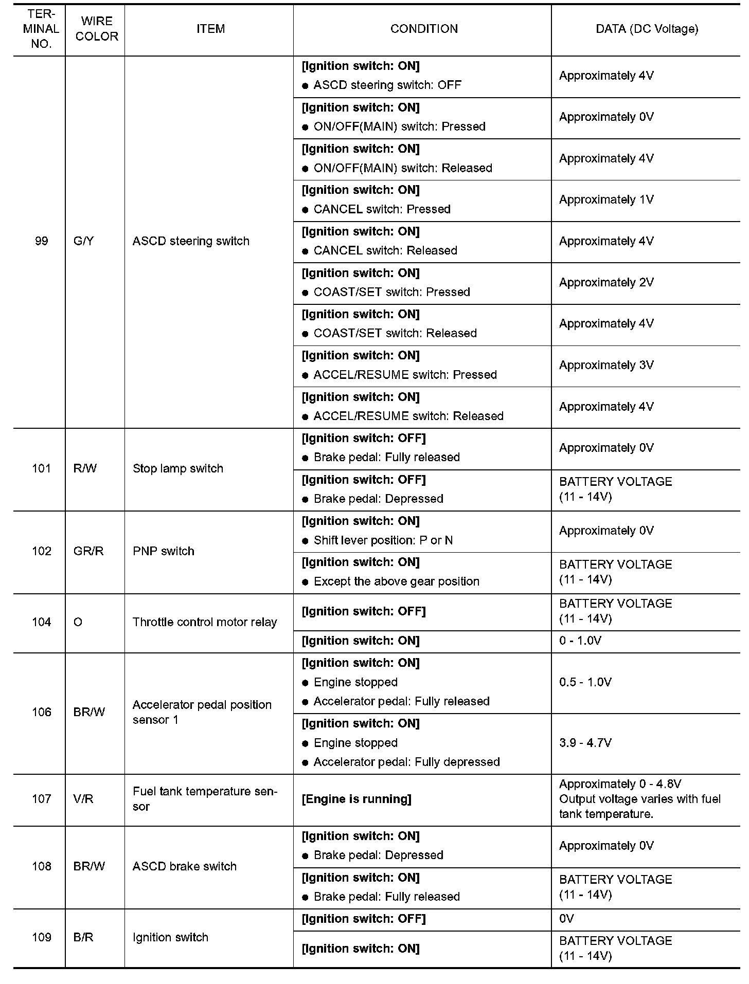 ECM Harness Connector Terminal Layout: