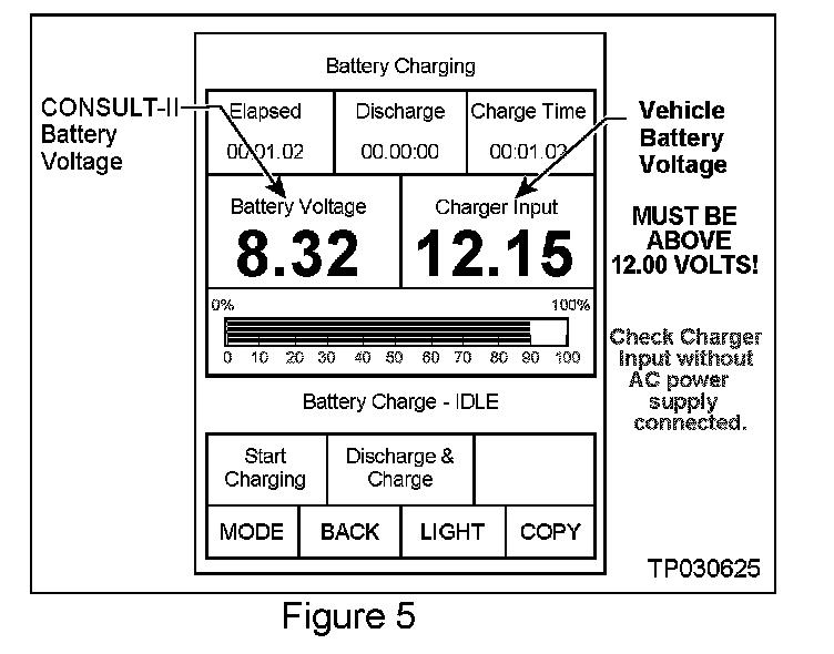 3. Check the CONSULT-II's "Charger Input" reading (see Figure 5).