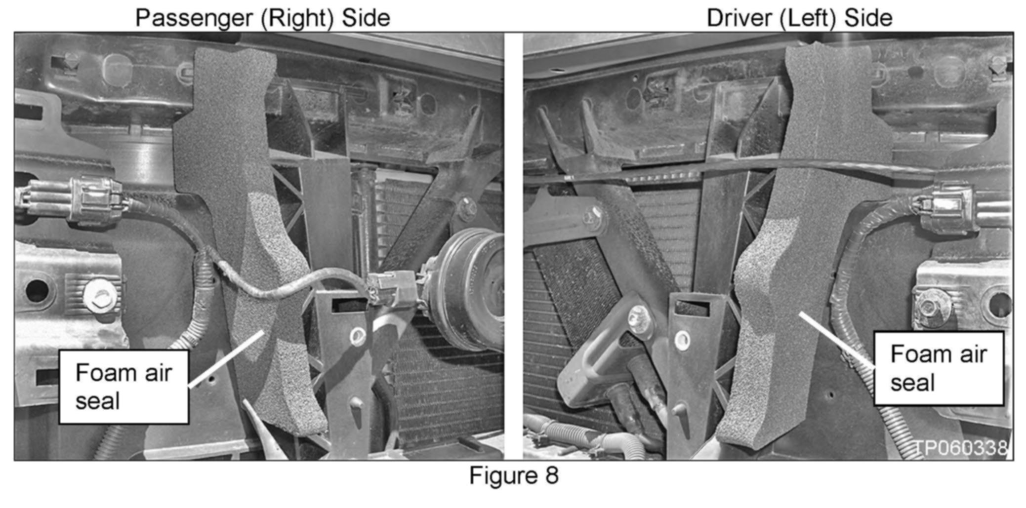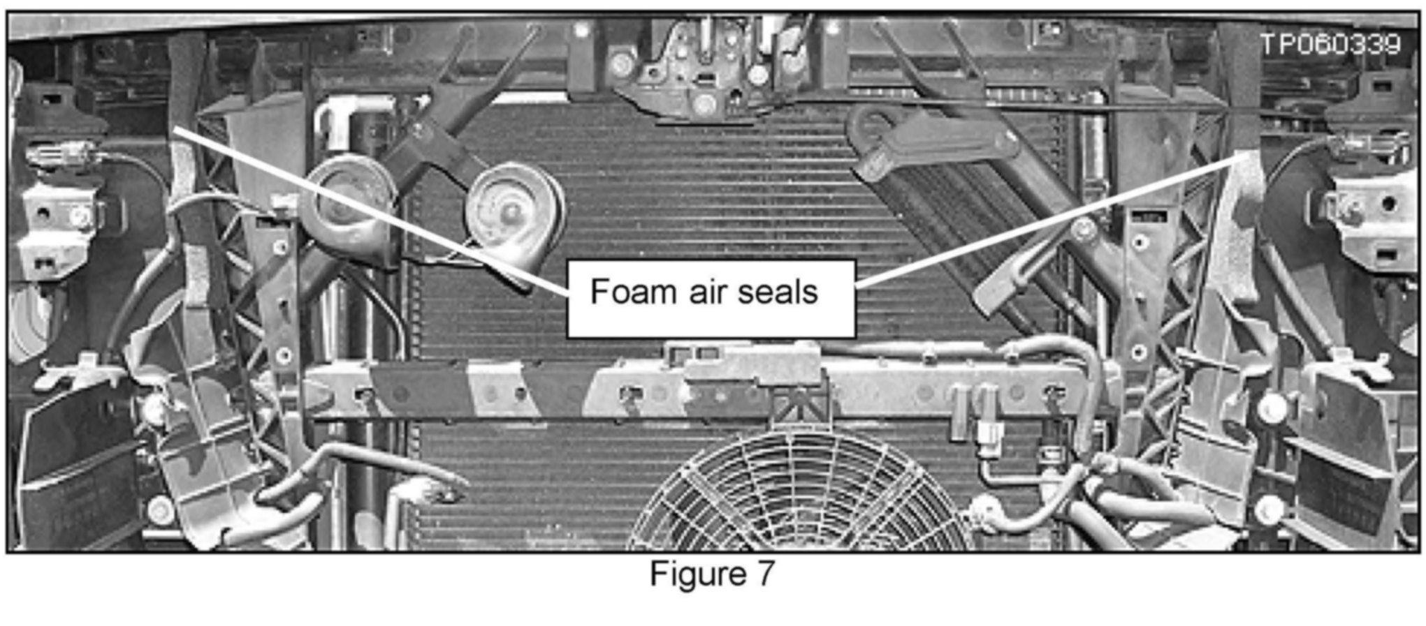 1. Install the 2 foam air seals as shown in Figures 7 and 8.