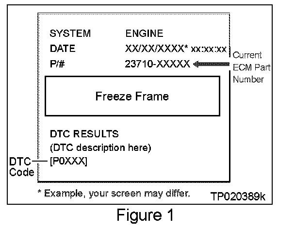 3. Check the ECM Part Number on the printout from Step 1 (Figure 1);
