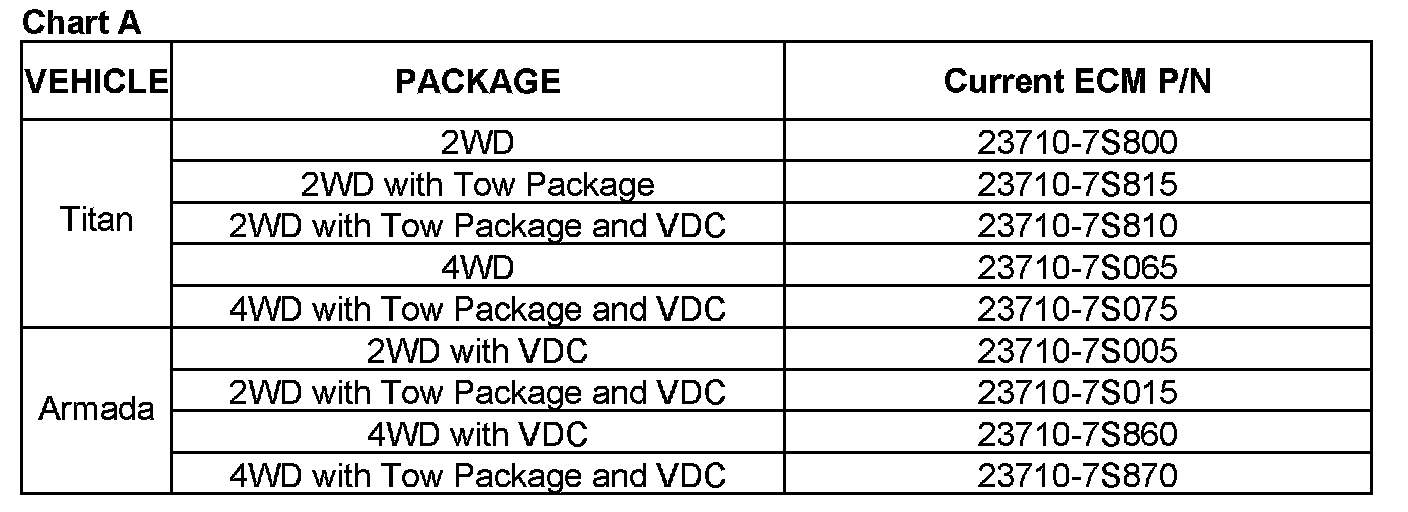 ^ Compare your vehicle's ECM P/N to those shown under Current ECM P/N in Chart A, above: