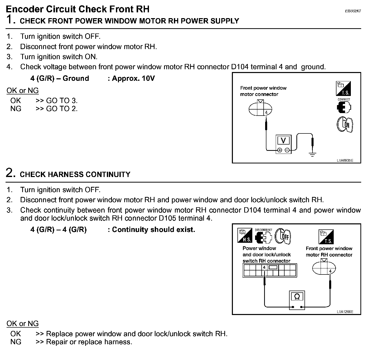 Encoder Circuit Check Front RH (Steps 1 - 2):