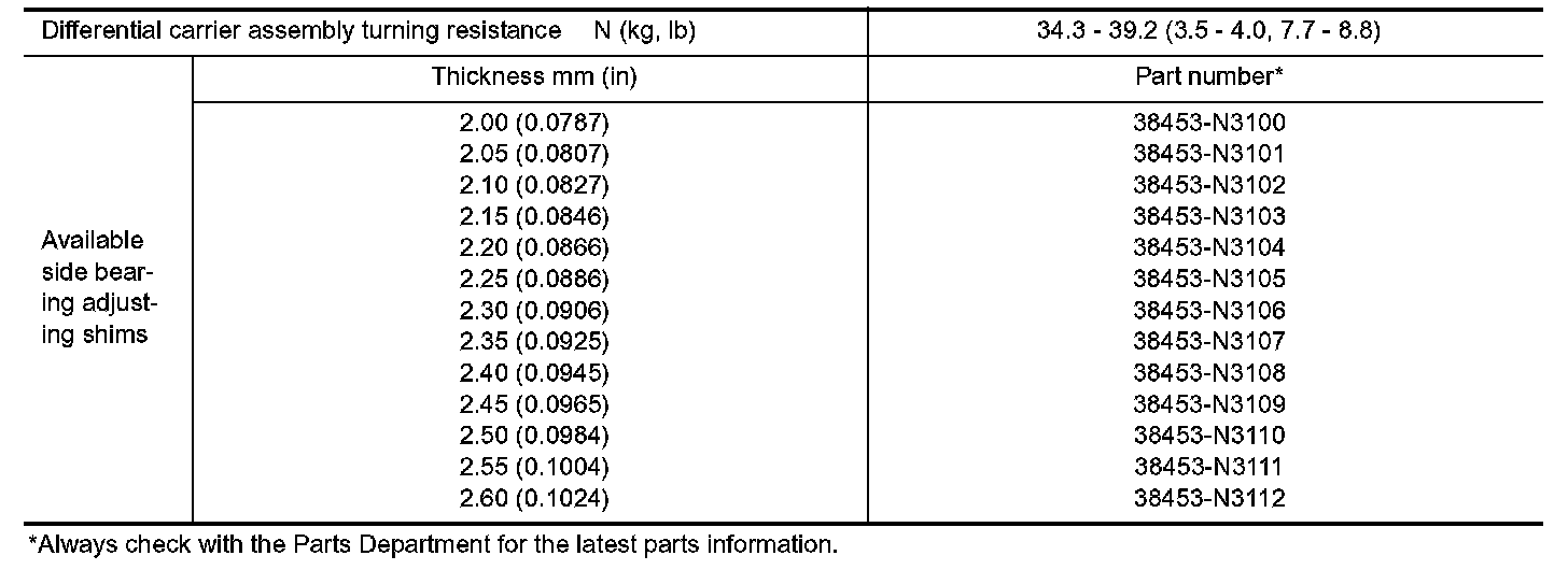 SIDE BEARING ADJUSTMENT / Rear - C200: