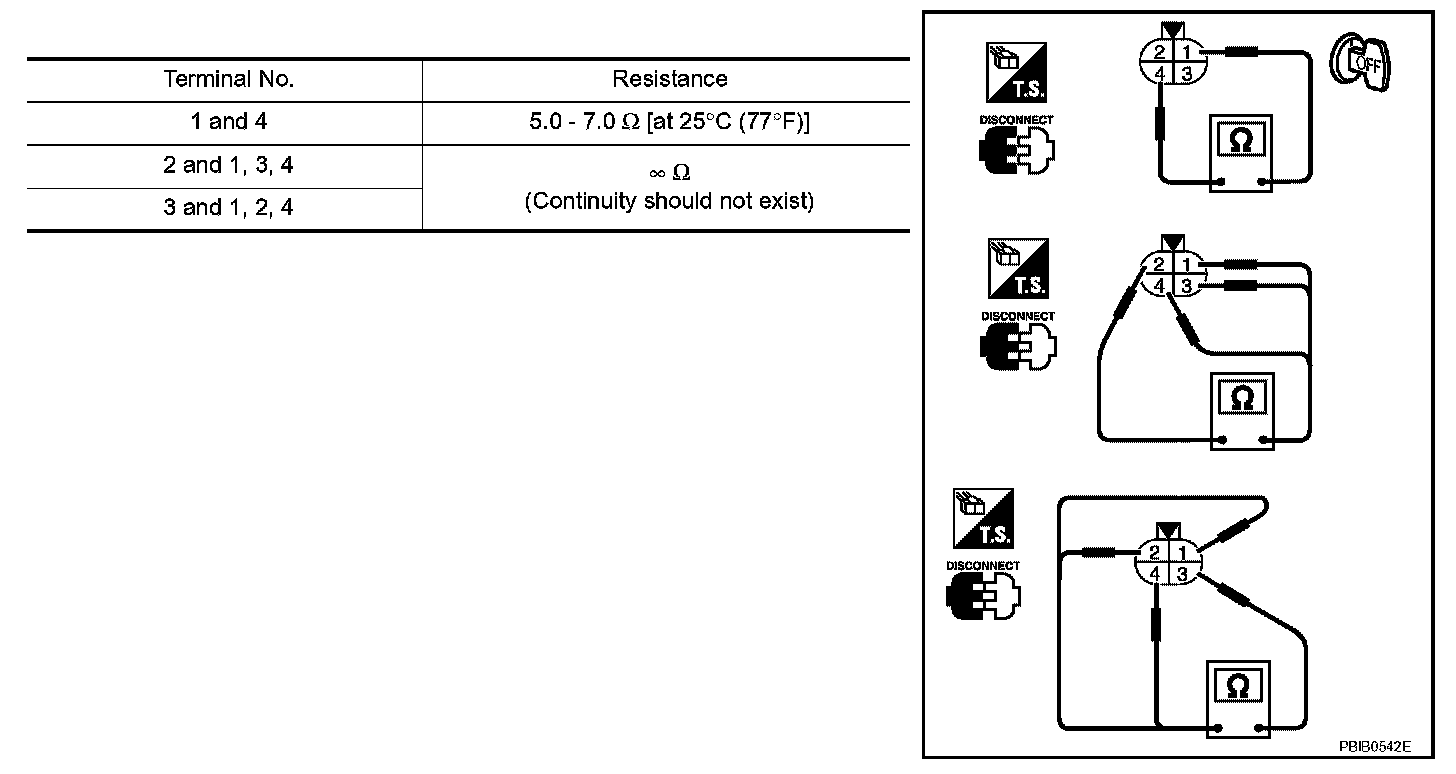 Check resistance between terminals 3 and 4.
