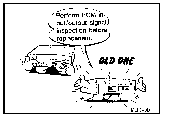 - Before replacing ECM, perform "ECM Terminals and Reference Value" Pinout Values and Diagnostic Parameters inspection and make sure ECM functions properly.