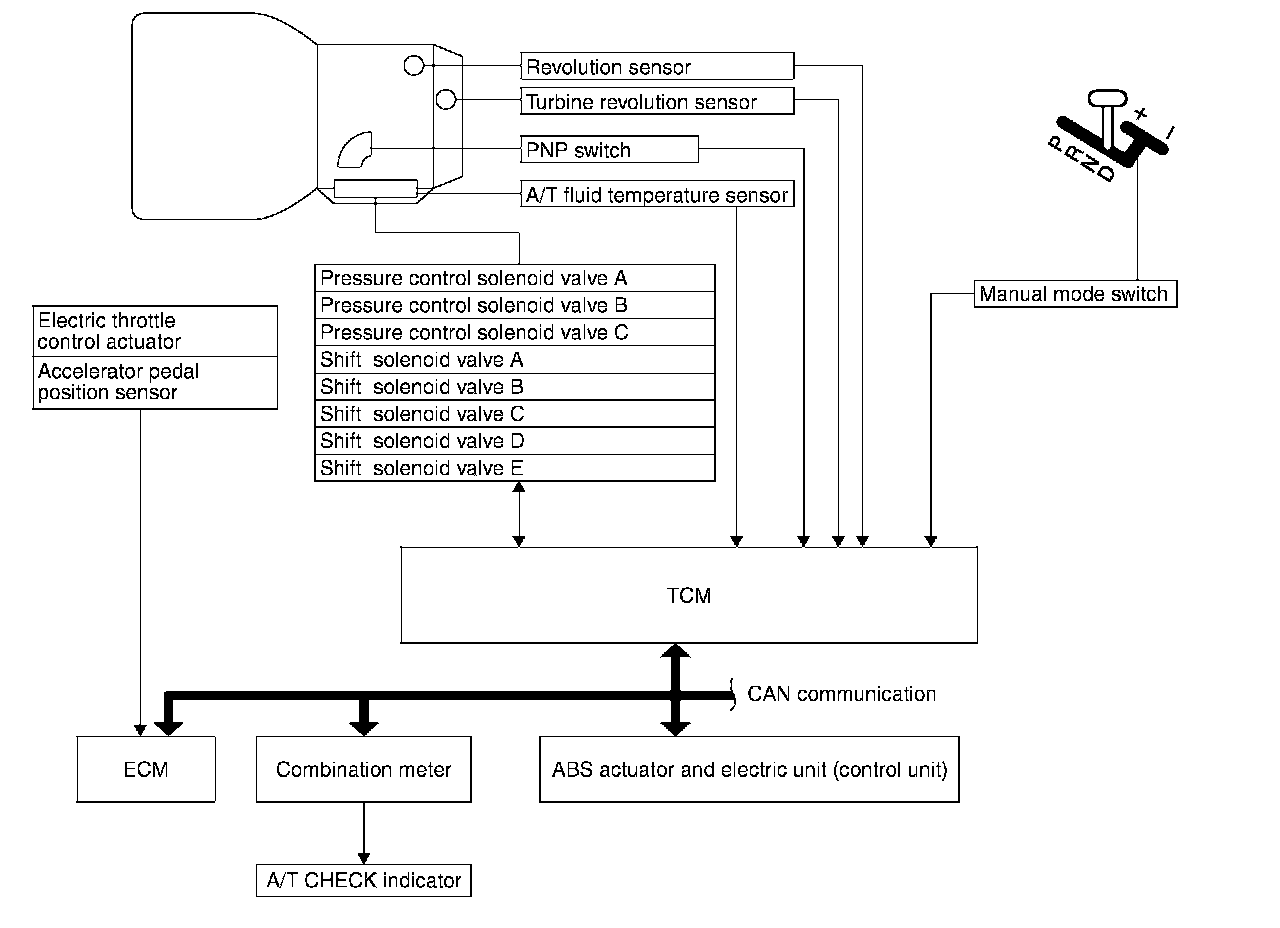 ^ Determine required line pressure, shifting point, lock-up operation, and engine brake operation.