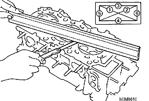 CYLINDER HEAD DISTORTIONClean the surface of the cylinder head. Use a reliable straightedge and feeler gauge to check the flatness of cylinder head surface.