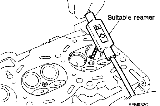 When valve guide is removed, replace with oversized [0.2 mm (0.008 inch)] valve guide.