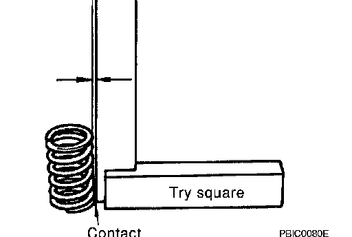 Set try square along the side of valve spring and rotate the spring. Measure the maximum clearance between the top face of spring and try square.
