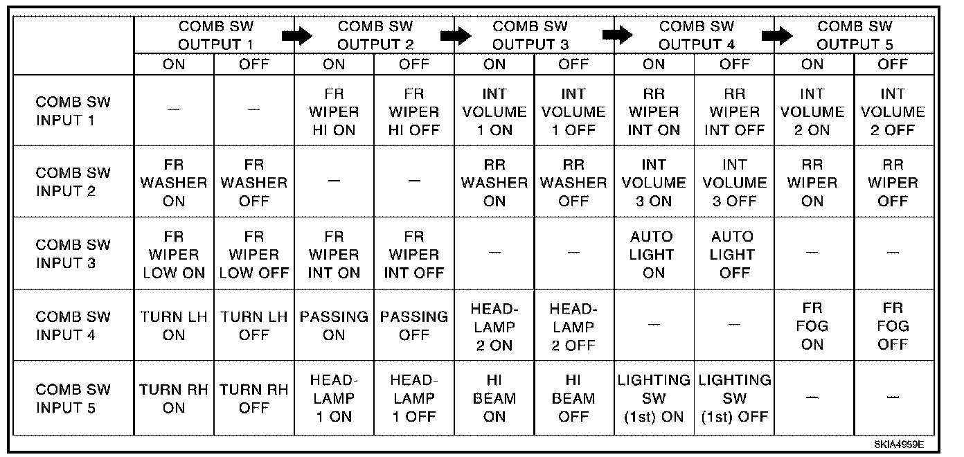 3. BCM - Operation table of combination switch