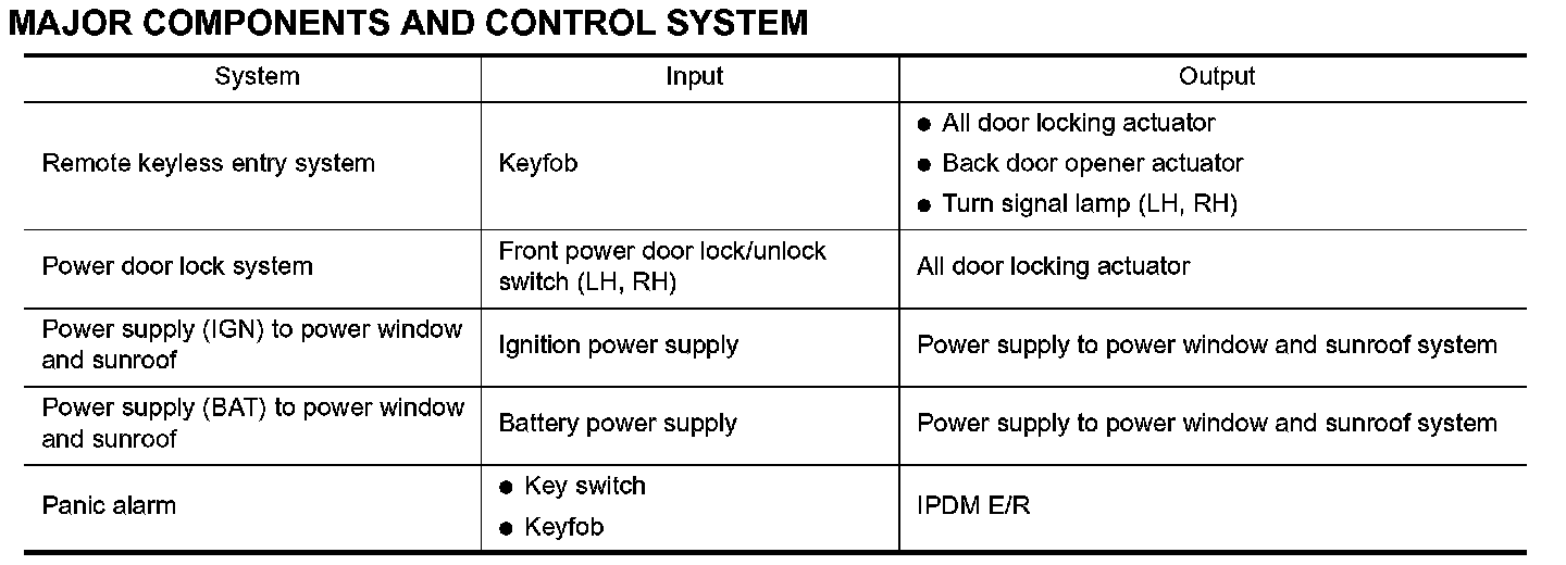 - Power door lock system. Refer to "POWER DOOR LOCK SYSTEM".