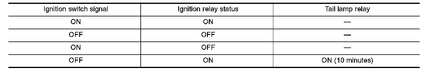 - When the state of the integrated ignition relay does not agree with the state of the ignition switch signal received via CAN communication, the IPDM E/R activates the tail lamp relay.