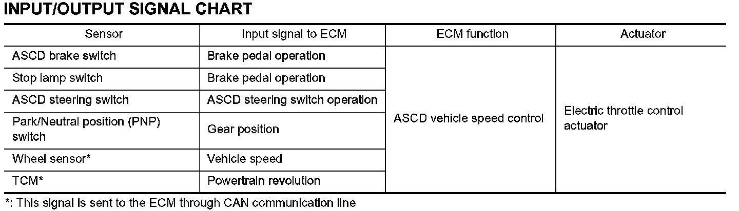 When the SET/COAST switch is pressed during cruise control driving, decrease vehicle set speed until the switch is released. And then ASCD will keep the new set speed.