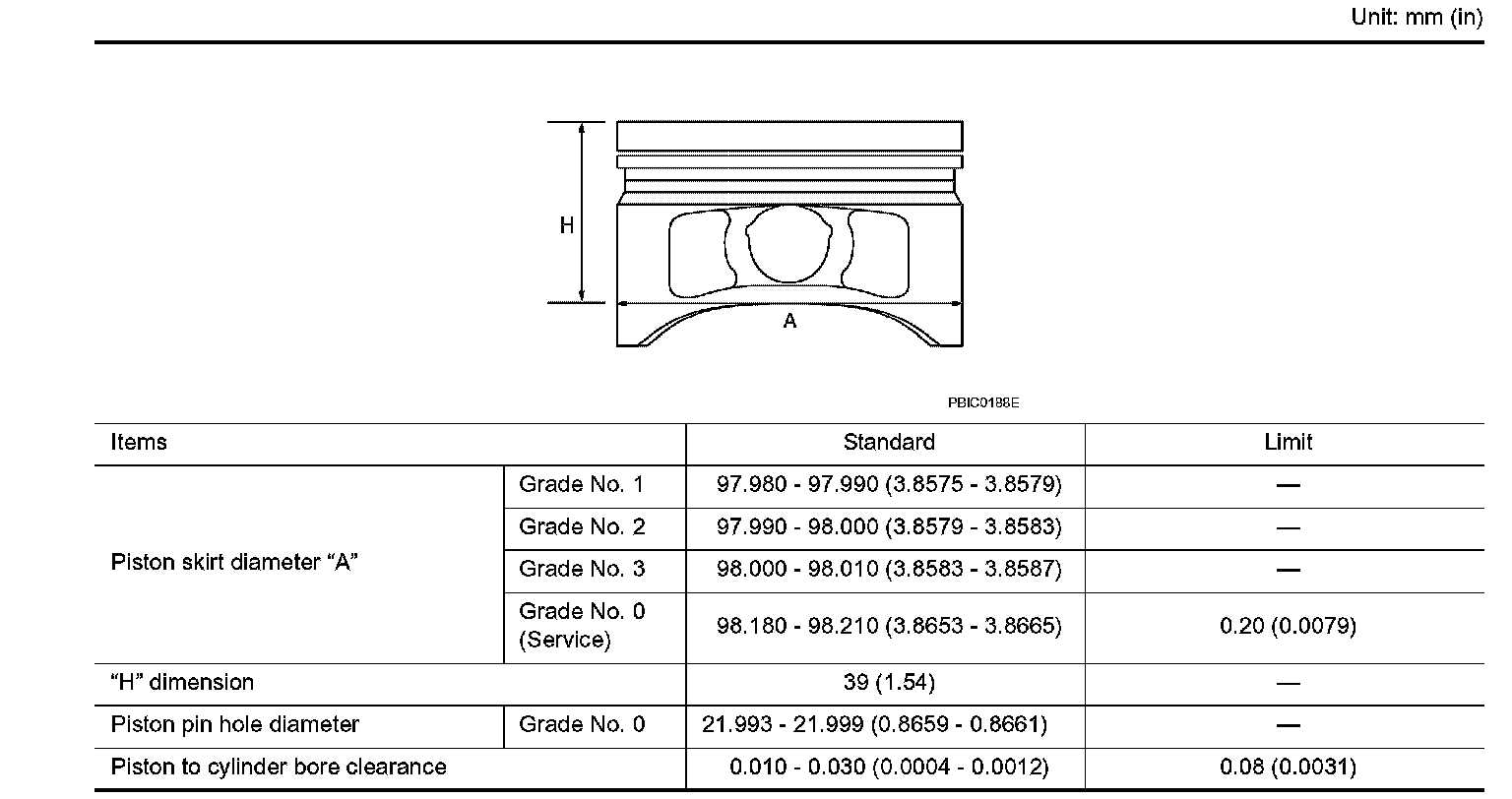 ^ Calculate by using diameter of the piston skirt and the cylinder bore diameter (direction X, position B). (Clearance) = (Cylinder bore diameter) - (piston skirt diameter)