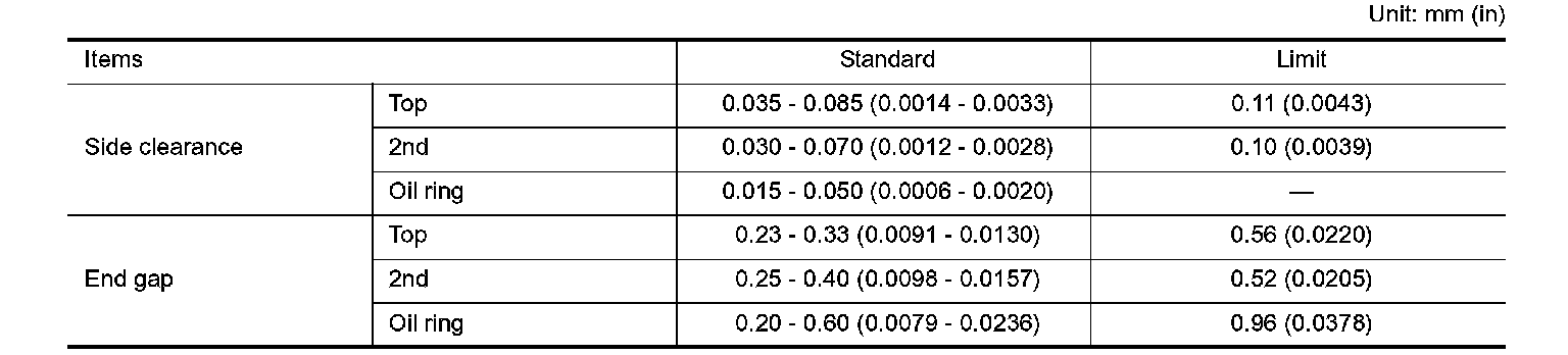 ^ If measured value exceeds the repair limit, or if there are scratches and/or seizure on the cylinder inner wall, hone or bore the Inner wall.