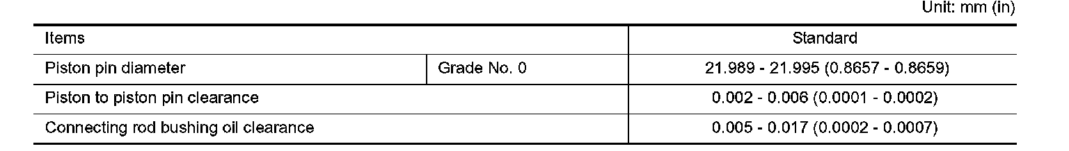 NOTE: The connecting rod small end grade and piston pin hole (piston pin) grade are provided only for the parts installed at the plant. For service parts, no grades can be selected (only 0 grade is available).