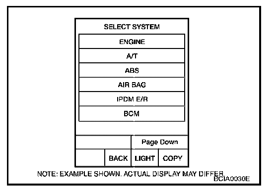 3. Touch "BCM" on "SELECT SYSTEM" screen.