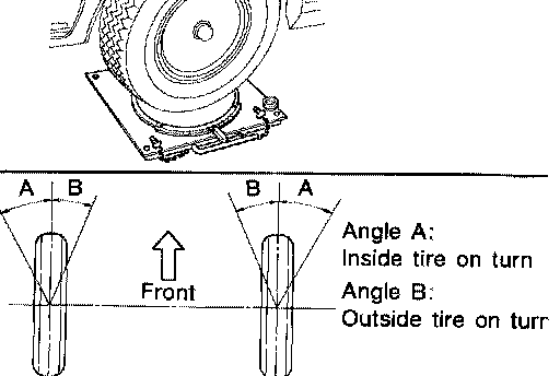 FRONT WHEEL TURNING ANGLENOTE: Check front wheel turning angle after the toe-in inspection.