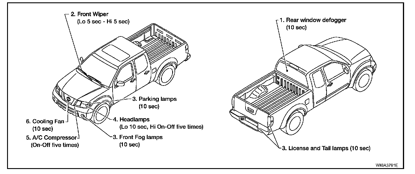 - In auto active test mode, operation inspection can be performed when IPDM E/R sends a drive signal to the following systems: