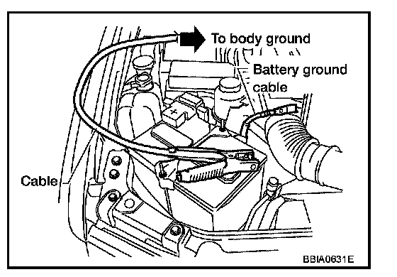 3. Install jumper cable between battery negative terminal and body ground.