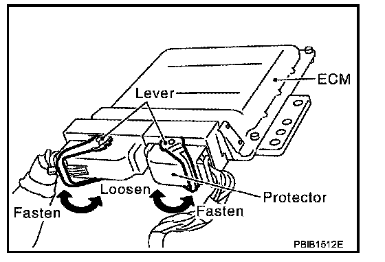 3. When disconnecting ECM harness connector, loosen it with levers as far as they will go as shown in the figure.