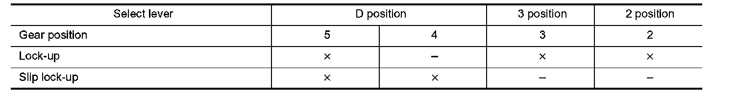 Lock-up Operation Condition Table