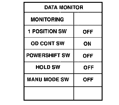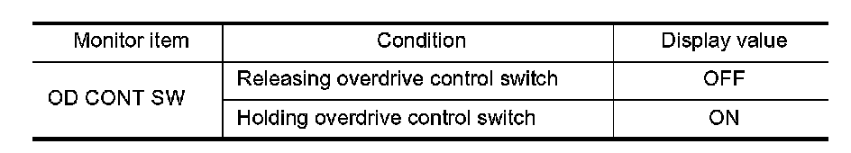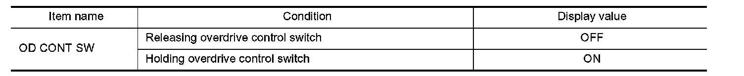 3. Read out OD CONT SW. Check the signal of the overdrive control switch is indicated properly.