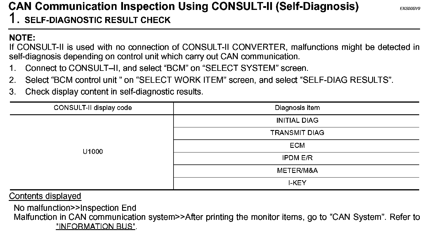 CAN Communication Inspection Using CONSULT-II (Self-Diagnosis):