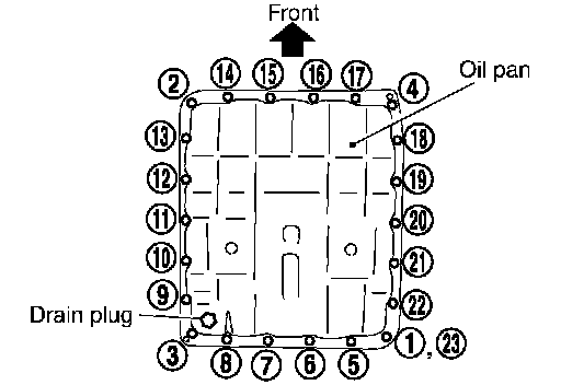 Tighten oil pan bolts in numerical order as shown.