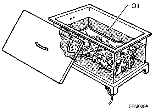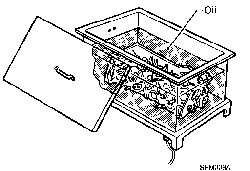 3. Heat cylinder head to 110° to 130°C (230° to 266°F) by soaking in heated oil.