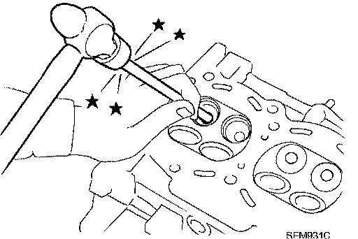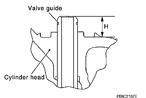 When valve guide is removed, replace with oversized [0.2 mm (0.008 inch)] valve guide.