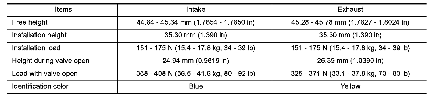 VALVE SPRING DIMENSIONS AND VALVE SPRING PRESSURE LOAD