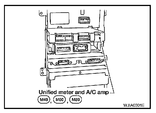 The unified meter and A/C amp. has a built-in microcomputer which processes information sent from various sensors needed for air conditioner operation. The air mix door motors, mode door motor, intake door motor, blower motor and compressor are then controlled. The unified meter and A/C amp. is unitized with control mechanisms.