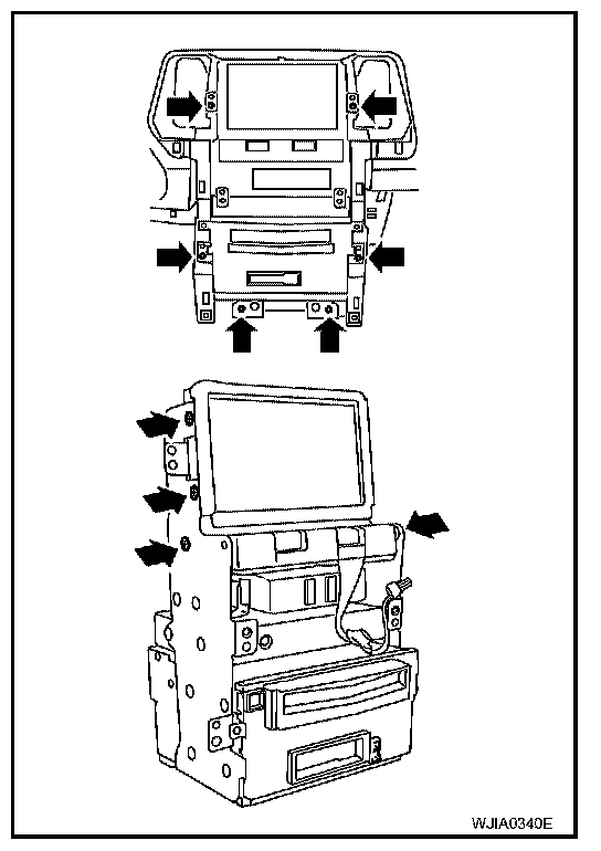 8. Gently spread the top of the bracket and remove the unified meter and A/C auto amp.