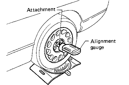1. Measure the camber, caster and kingpin inclination of both the right and left wheels using attachment Tool and a suitable alignment gauge.
