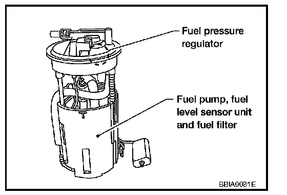 The fuel level sensor is mounted in the fuel level sensor unit. The sensor detects a fuel level in the fuel tank and transmits a signal to the unified meter and A/C amp. The unified meter and A/C amp. sends the fuel level sensor signal to the ECM through CAN communication line.