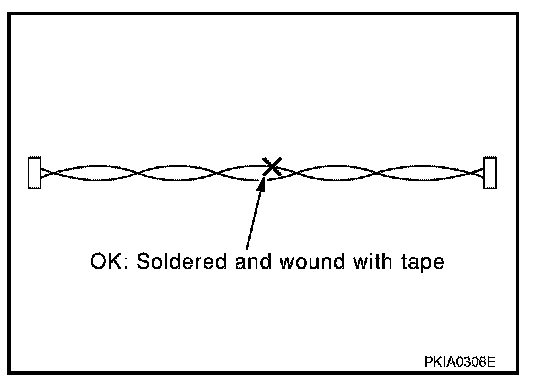 - Do not make a bypass connection to repaired area. (If circuit is bypassed, characteristics of twisted wire will be lost.)