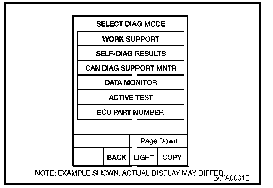 2. Touch "WORK SUPPORT" on "SELECT DIAG MODE" screen.