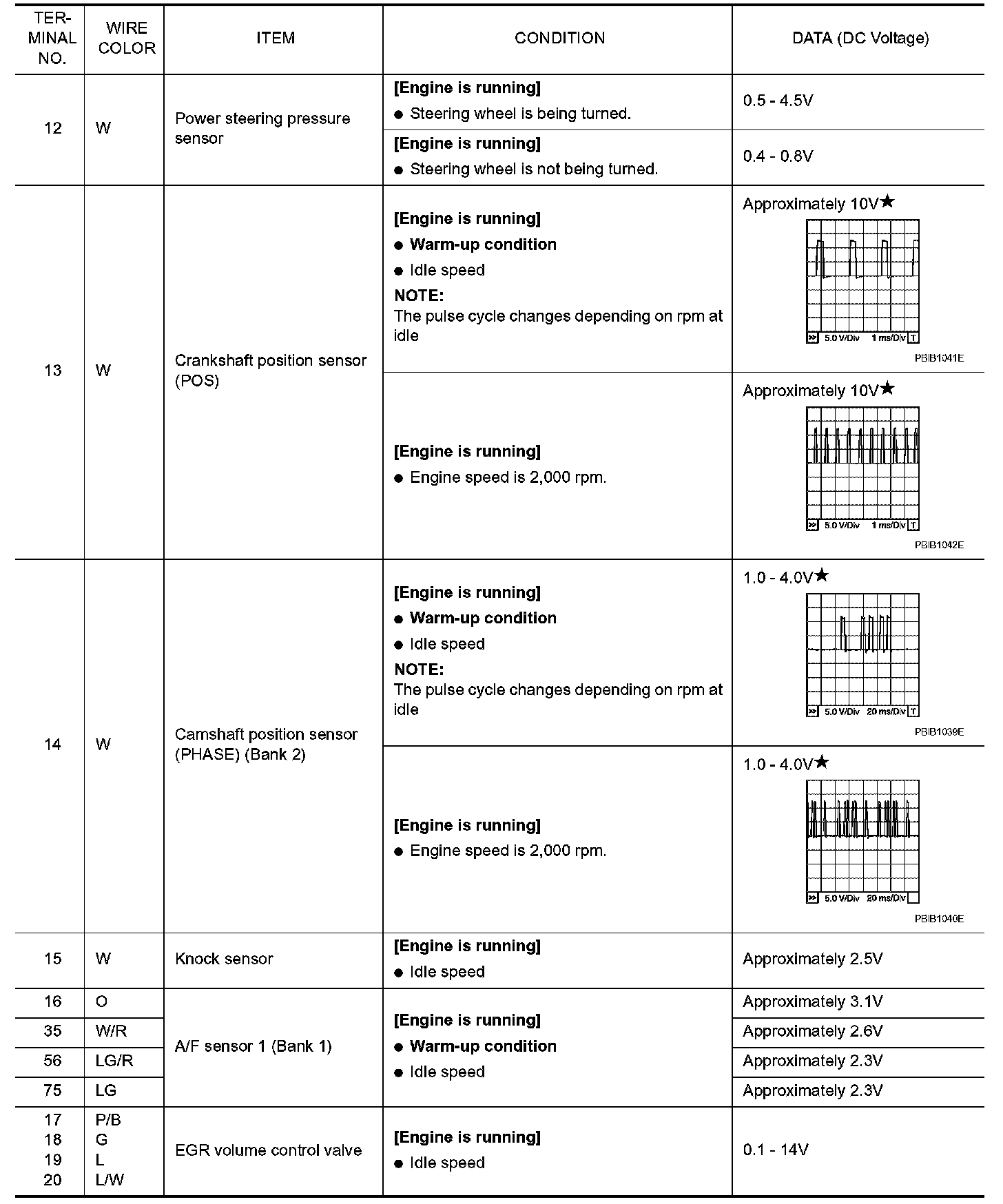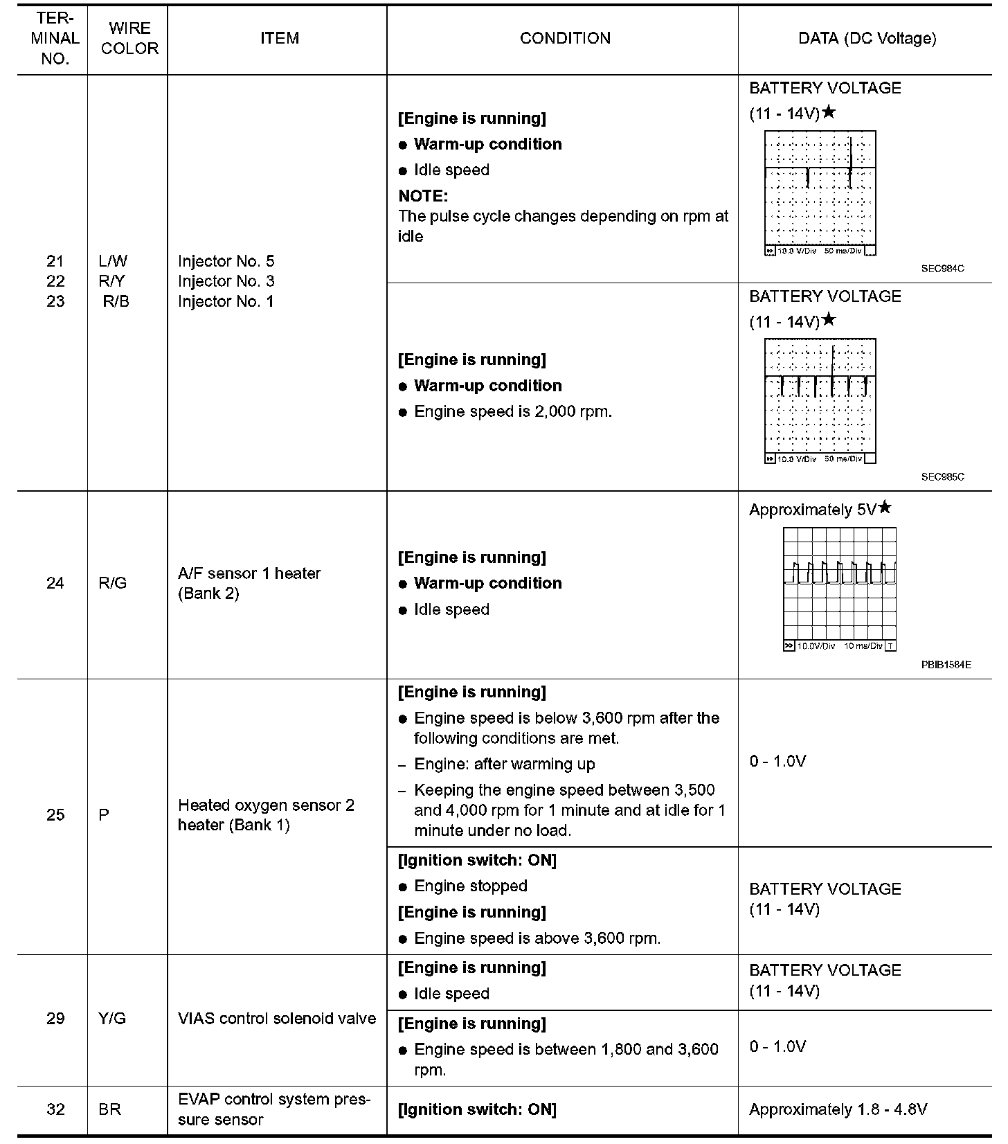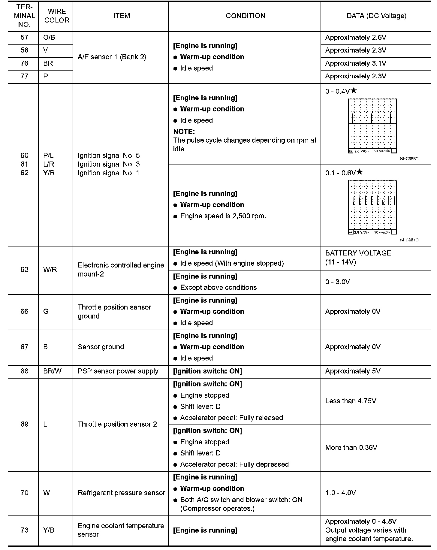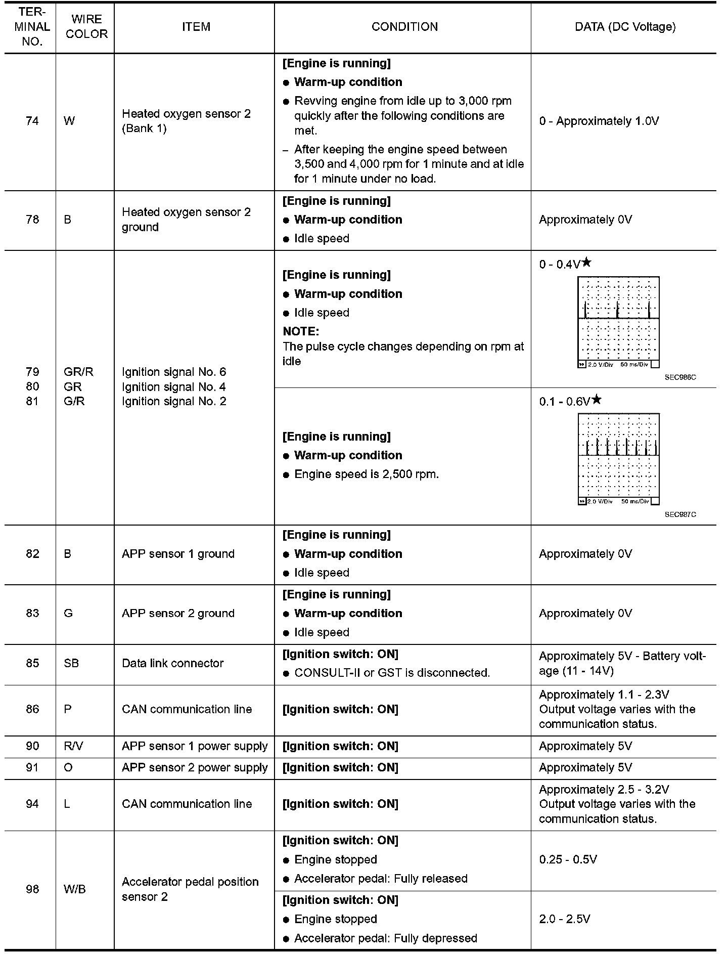 Specification data are reference values and are measured between each terminal and ground. Pulse signal is measured by CONSULT-II.