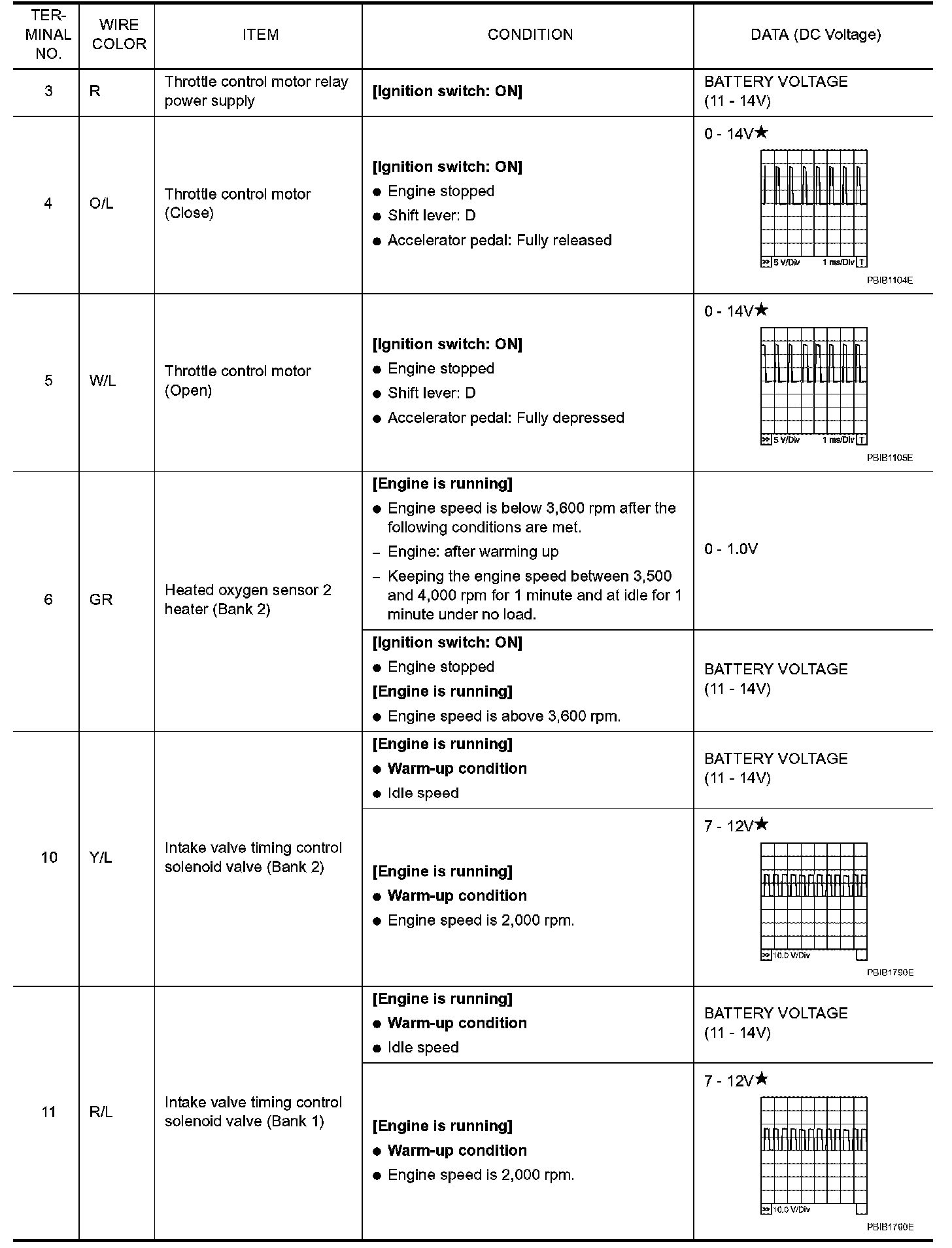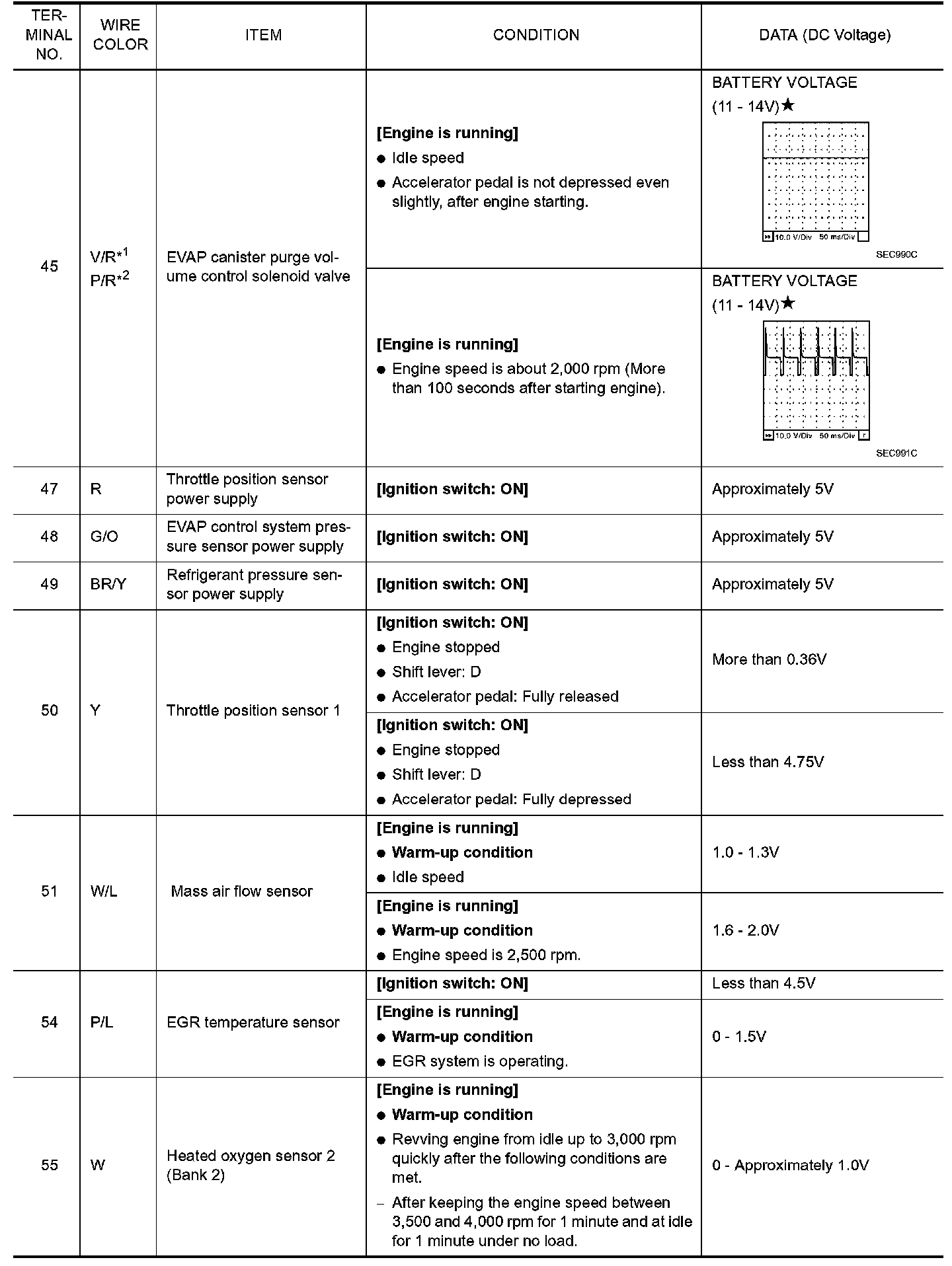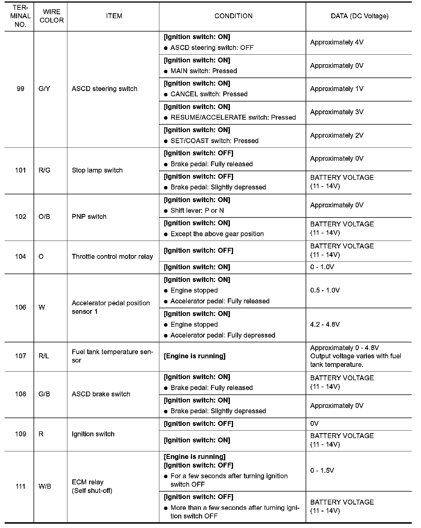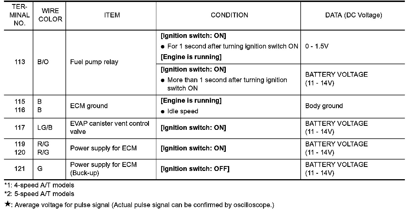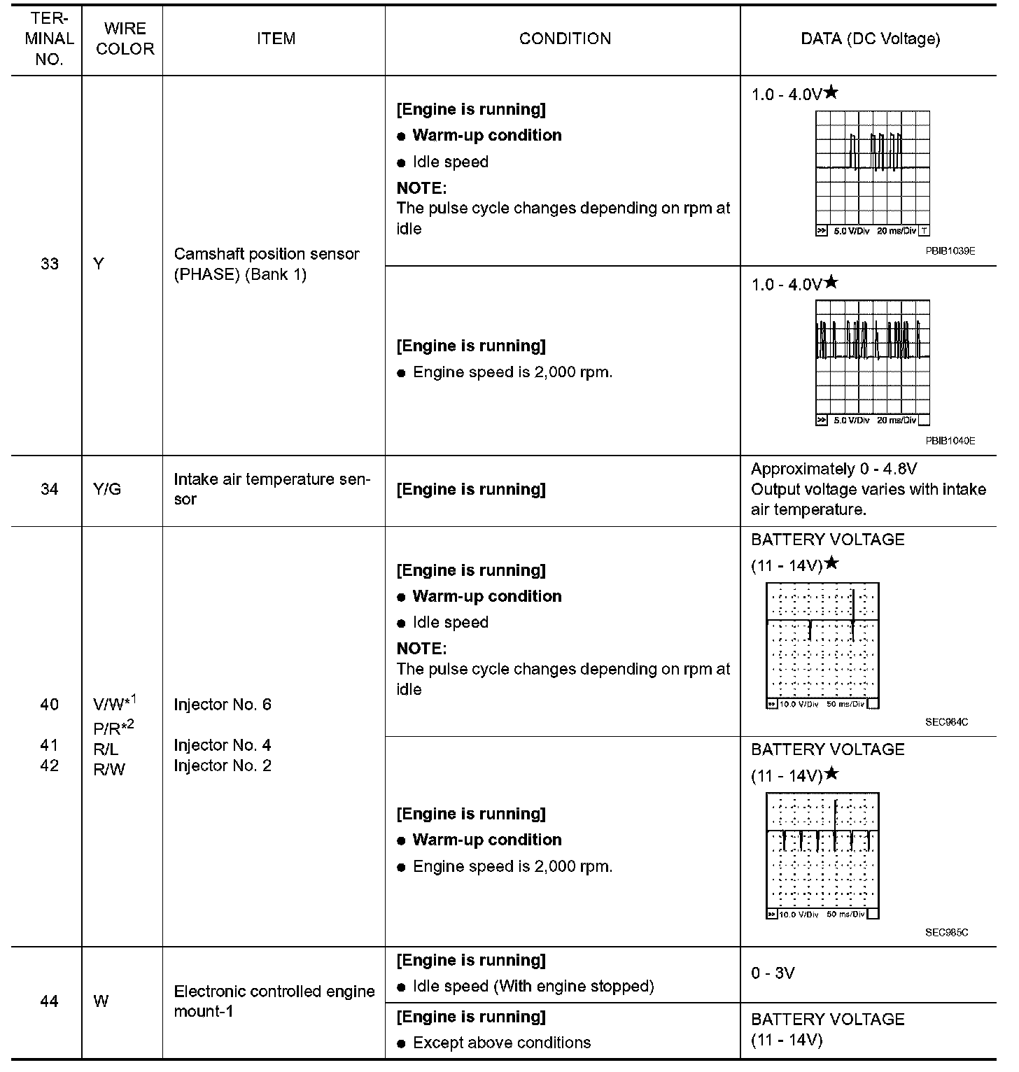 Specification data are reference values and are measured between each terminal and ground. Pulse signal is measured by CONSULT-II.