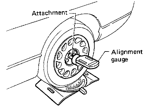 1. Measure the camber, caster and kingpin inclination of both the right and left wheels using attachment Tool and a suitable alignment gauge.